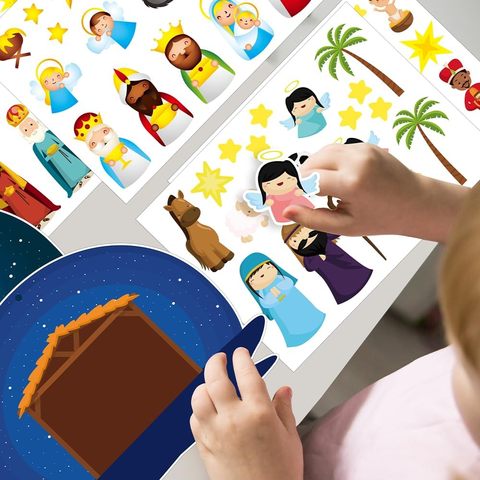 Pegatinas de Natividad para niños Escena de Natividad Artesanía Hacer una escena Pegatina Pegatinas de Navidad A granel Fiesta religiosa Favores Suministros