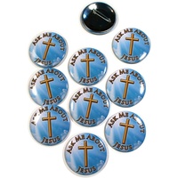 กำหนดเองเกี่ยวกับพระเยซูปุ่มพินแบ็คป้ายโลหะเทศกาลพร้อมพินแบ็คที่ปลอดภัยสำหรับขบวนพาเหรดปาร์ตี้สปอร์ตบาร์