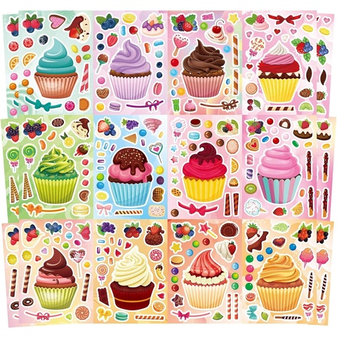สติกเกอร์คัพเค้กสำหรับเด็กทำขนมหวานฉลากแบบมิกซ์แอนด์แมทช์ขนมหวานงานฝีมือผลไม้รางวัลสำหรับงานเลี้ยงวันเกิดตามสั่ง