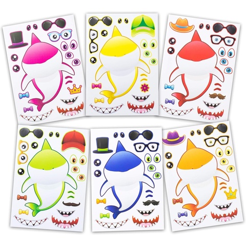 สติกเกอร์ฉลามที่กำหนดเองสำหรับงานเลี้ยงวันเกิดของเด็กๆรางวัลของตกแต่งที่มอบให้ลูกๆของคุณได้รับการออกแบบสร้างสรรค์สติกเกอร์ปลาฉลามของพวกเขา